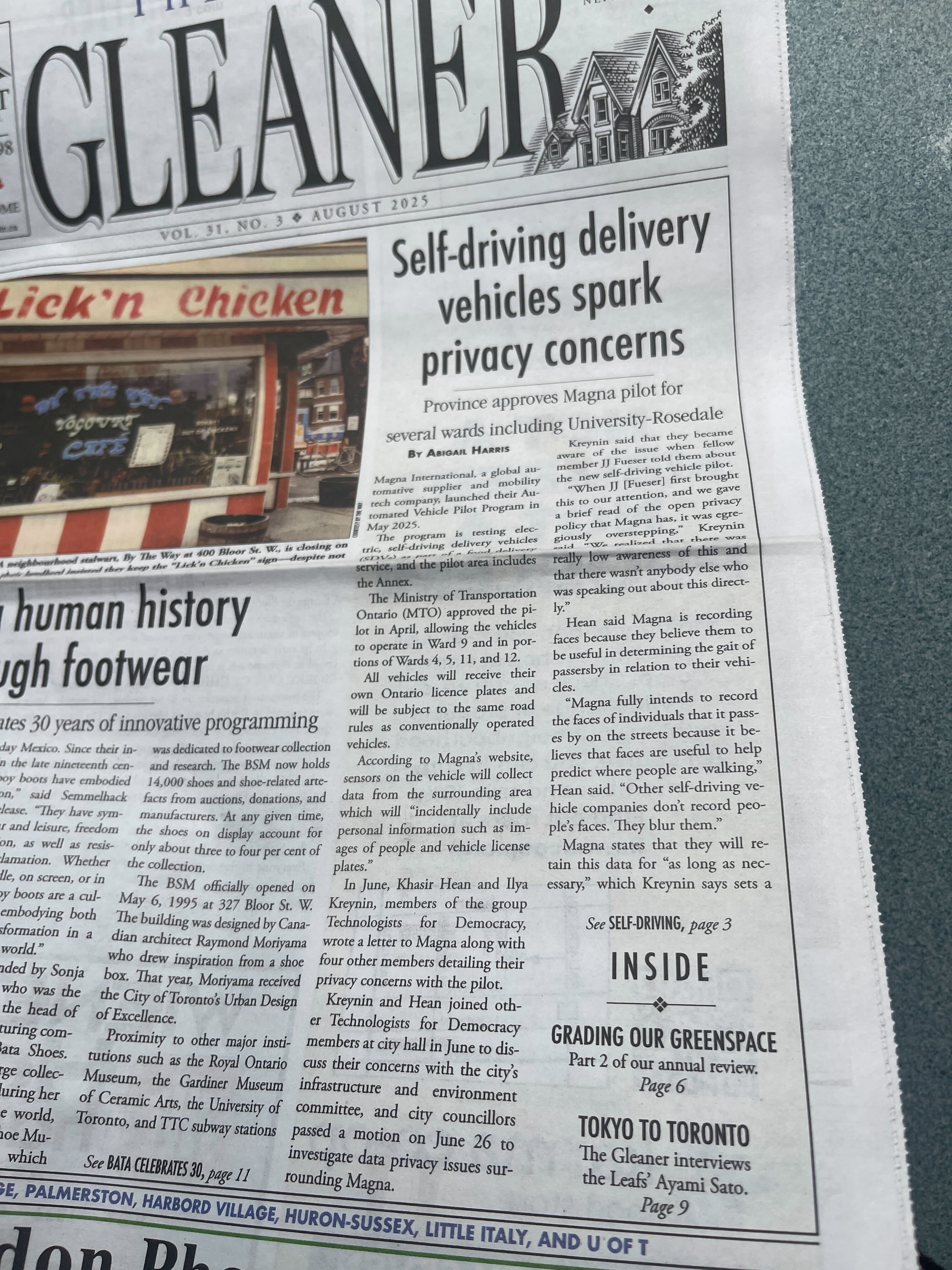 In June, Khasir Hean and Ilya Kreynin, members of the group Technologists for Democracy, wrote a letter to Magna along with four other members detailing their privacy concerns with the pilot.